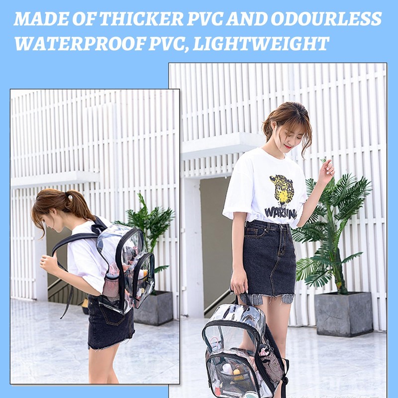 - 【Premium Material】The transparent backpack is crafted from waterproof PVC material, offers both durability and style. Its soft and flexible design allows for easy bending to accommodate your needs.