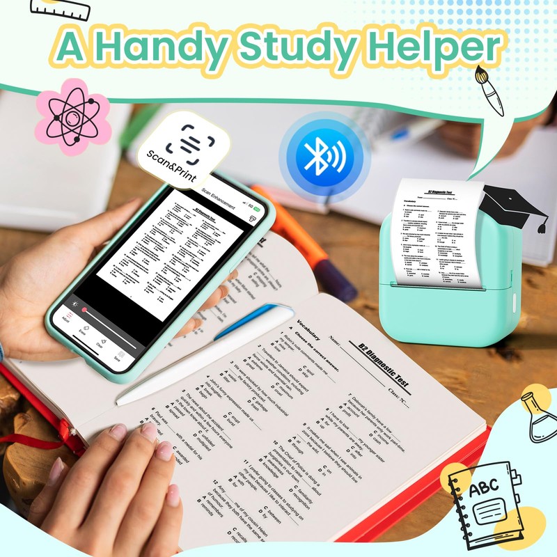 - Study Buddy - Our M02X mini thermarote sticker printer prints clearly and efficiently with the scanning feature and study module in the app. The mini pocket printer's design allows students to print anytime, anywhere, whether it's for biology, geography, math or any other subject greatly enhances their learning efficiency