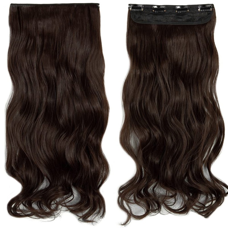 OMGREAT Clip in Hair Extensions 3Pcs 8Clips Double Weft Thick Curly Wavy Synthetic Hair Extensions - 24" Medium Brown