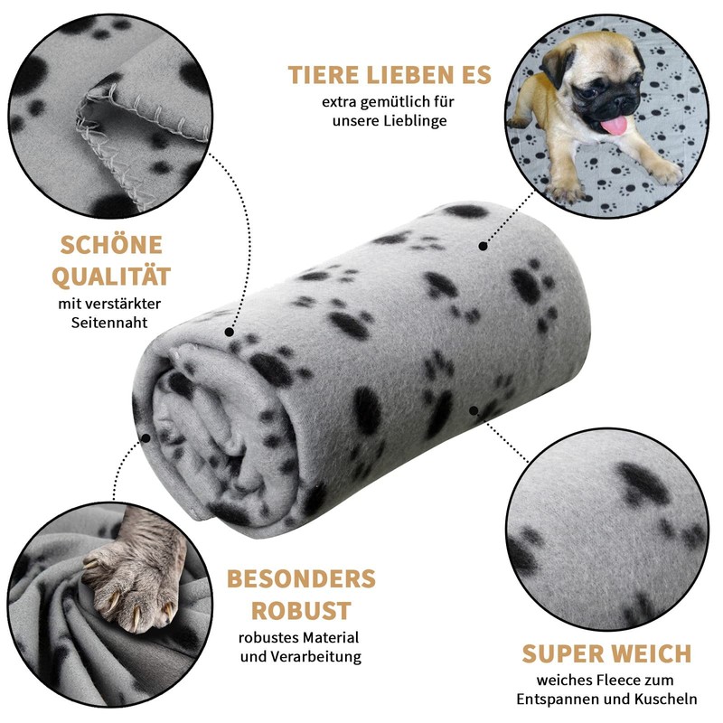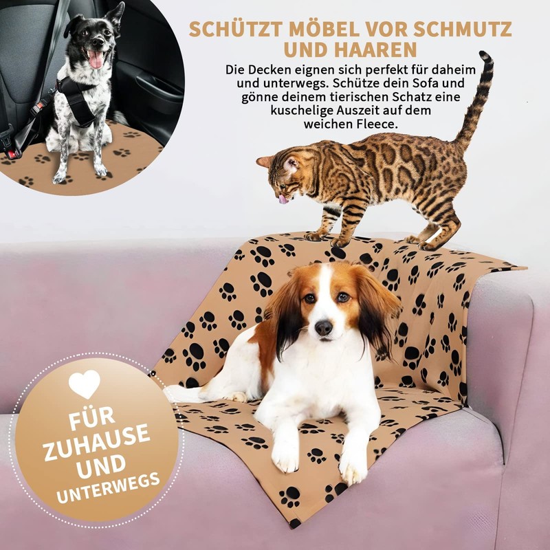 - Soft fleece blanket in a pack of 3 – large cuddly blankets measuring 70 x 100 cm. With cute paw print and in 3 neutral colours. Convenient to roll up and easy to carry