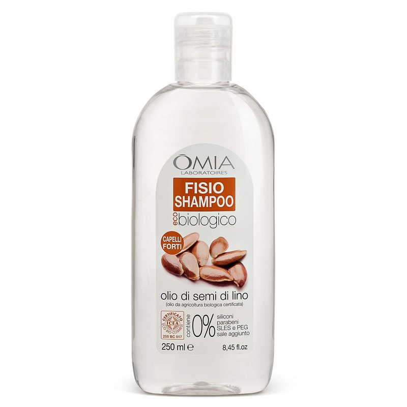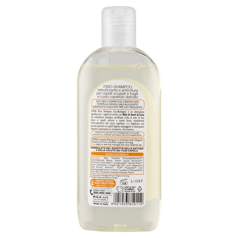 Omia, Fisio Eco Bio Shampoo mit Leinsamenöl für trockenes und krauses Haar, geeignet für eine häufige Anwendung, regenerierende Wirkung und Anti-Haarbruch, dermatologisch getestet, ohne SLES und PEG,