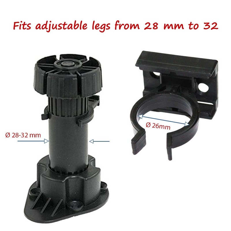 Screw Fixing Black Plastic Heavy Duty For Fixing Cabinet Feet To Pedestal/Kickboard Fits 30mm Diameter Cabinet Legs are not included.