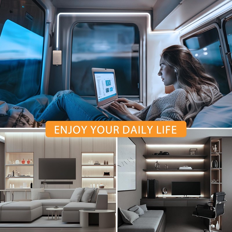 - Easy Installation: Features 3M tape for simple application on smooth surfaces. The strip is flexible and cuttable every 5cm, allowing for custom fitting in various spaces