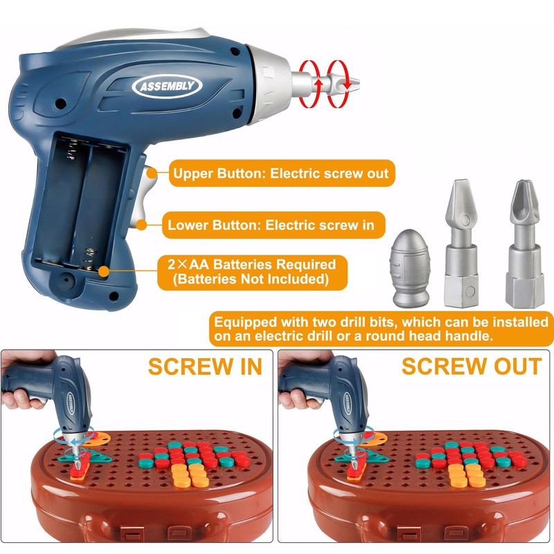• 1. Versatile Magic Montessori Toolbox: This kids' power drill set includes a toy screwdriver, playful wrench, and realistic power drill toy, perfect for fostering their confidence as they learn to fix, disassemble, and complete valuable tasks on their own. Suitable for children aged 3-12. (NOTE: Requires two AA batteries, batteries are not included).