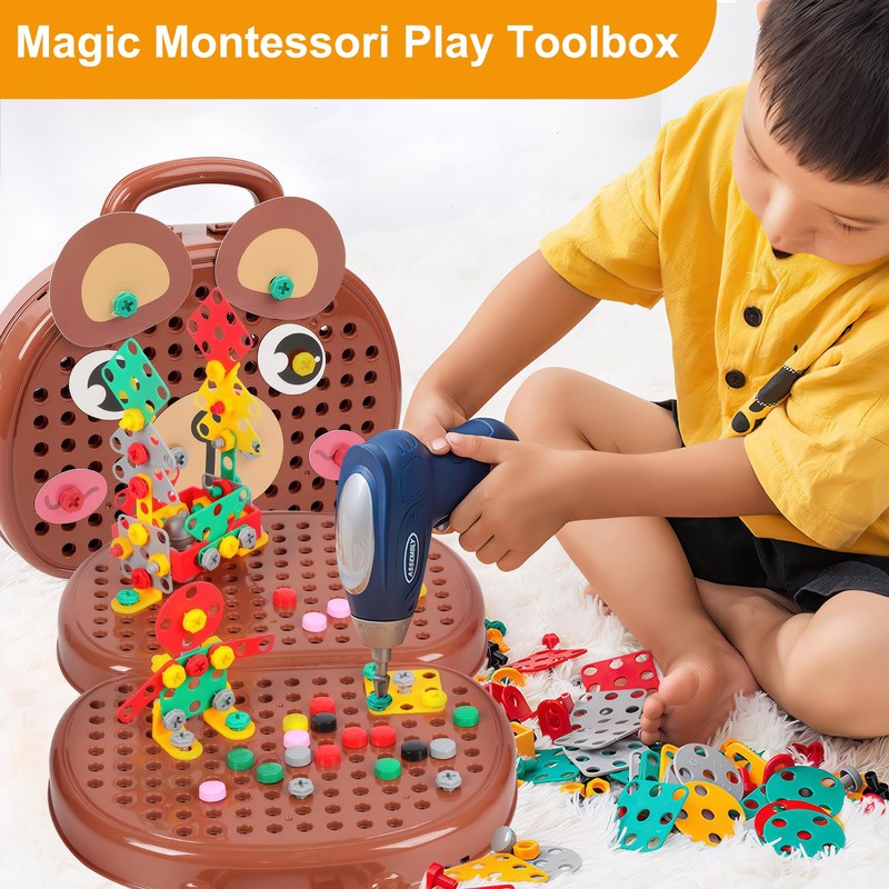 • 2. Nurturing Future Architects: Nurture your child's interests from a young age with our Magic Montessori Play Toolbox. It's more than a regular toy, it opens the door to the world of STEM for those interested in carpentry, construction, and design. The perfect gift choice!