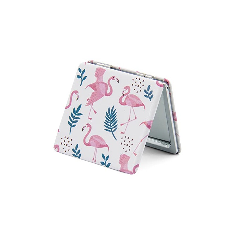 OMIRO 1X/3X Magnifying Mirror, Unique Painting Compact Mirror with Classical PU Leather (Pink Flamingos)