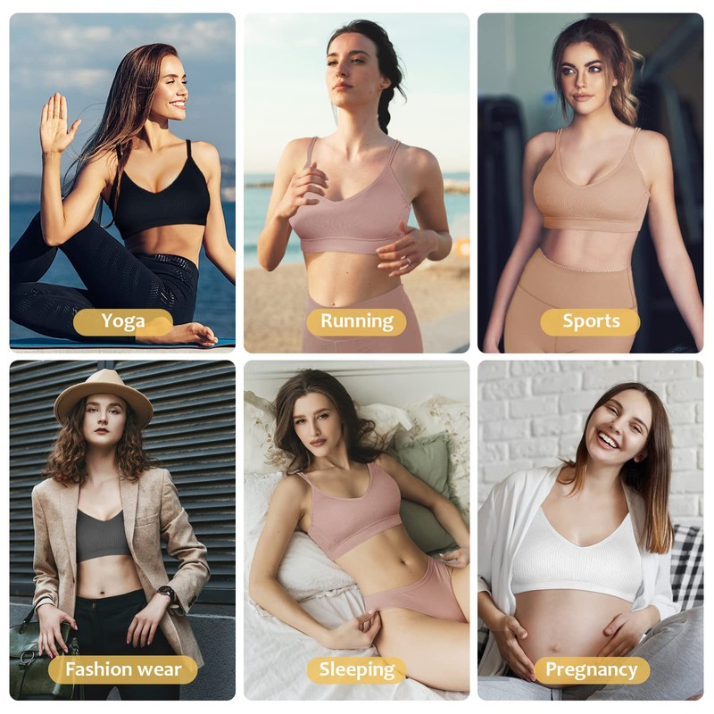 - Multifunctional Wear: These bras are designed for all seasons, serving as essential activewear for the gym with their super stretchy materials, perfect for yoga movements. Additionally, they can double as sleeping bras, providing a soft and comfortable sleep experience. Their versatility extends to serving as a t-shirt bra or a pregnancy bra, making them suitable for various life stages and occasions.
