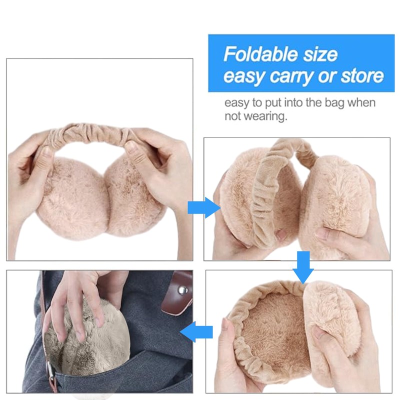 - The earmuffs can be quickly folded into a small round patch shape to store in a bag or bag when not in use.