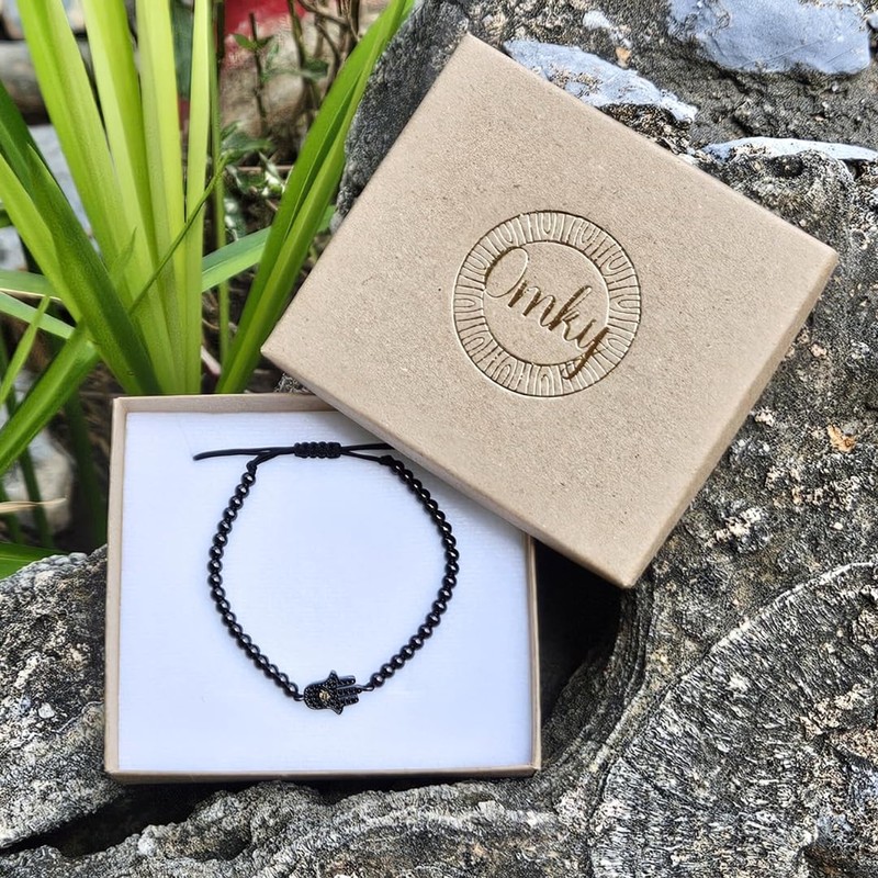 Omky Pulsera Ajustable - Hombre - Mujer - Mano de Fátima |Negro|