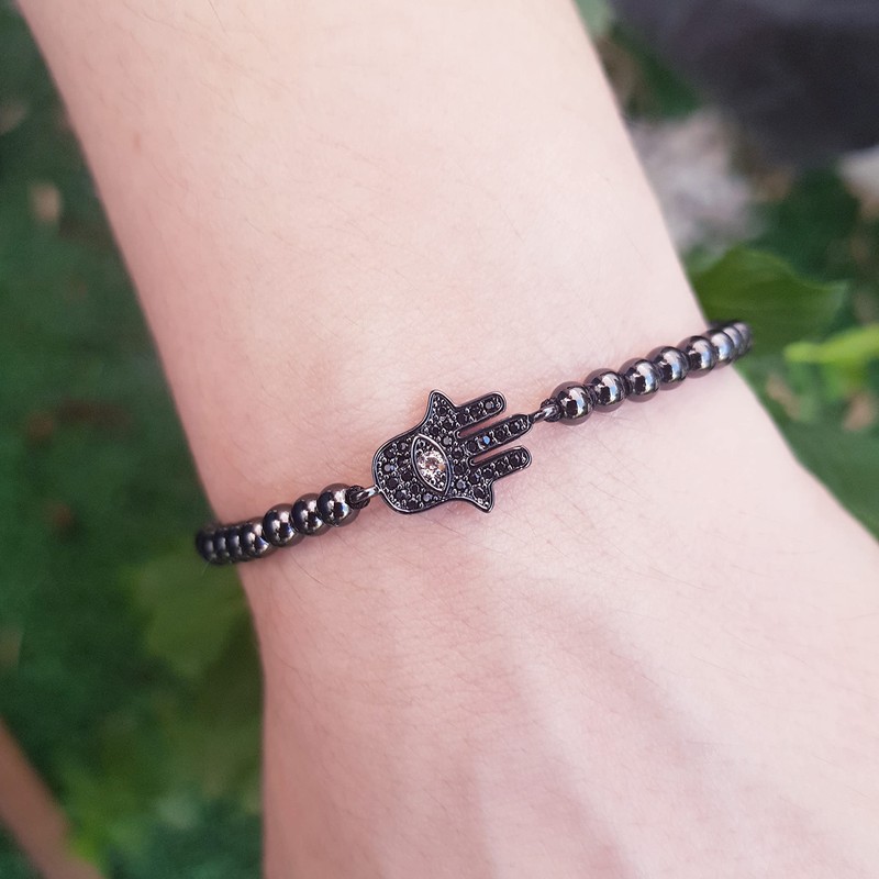 - ✔️GRAN CALIDAD Pulsera con cuentas de aleación de zinc en color negro 4 mm, dije de Mano de Fatima, hechas de hilo chino con nudo ajustable desde 15cm a 22cm.