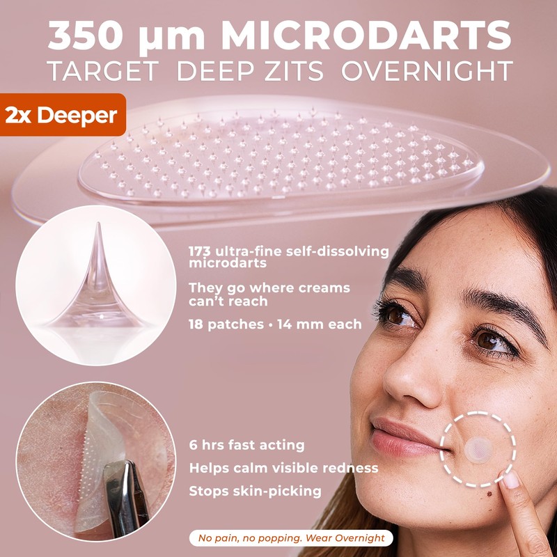- Fast-Acting Microdart Acne Patch. Our OMMA micropoint acne patch works really well for you on deep cystic acne. You will love this cystic acne overnight treatment due to our patented microcrystals. They penetrate the deeper layers of your skin to reduce pain and the redness of the zit! Our Korean zit patches quickly reduce inflammation of early-stage deep and painful zits!