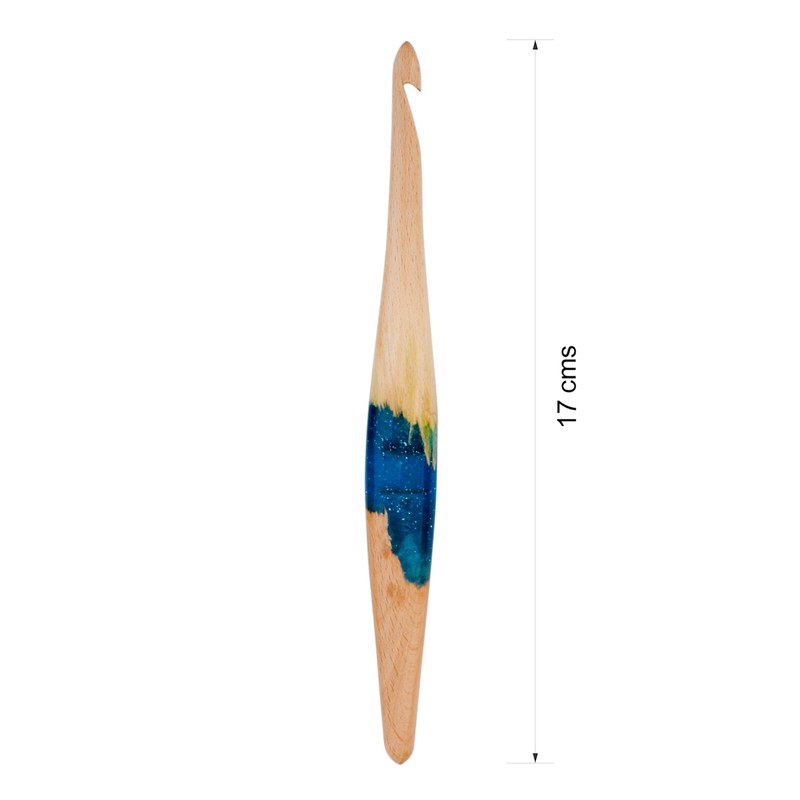 Ommi Ergonomic Handle Crochet Hooks | Handcrafted 17 cm Steam Beech Wood & Blue Resin Mix Crochet Hook | Knitting Needle, Craft Yarn Weave | Best Gift! (Steam Beech Wood & Blue Resin, 7 mm)