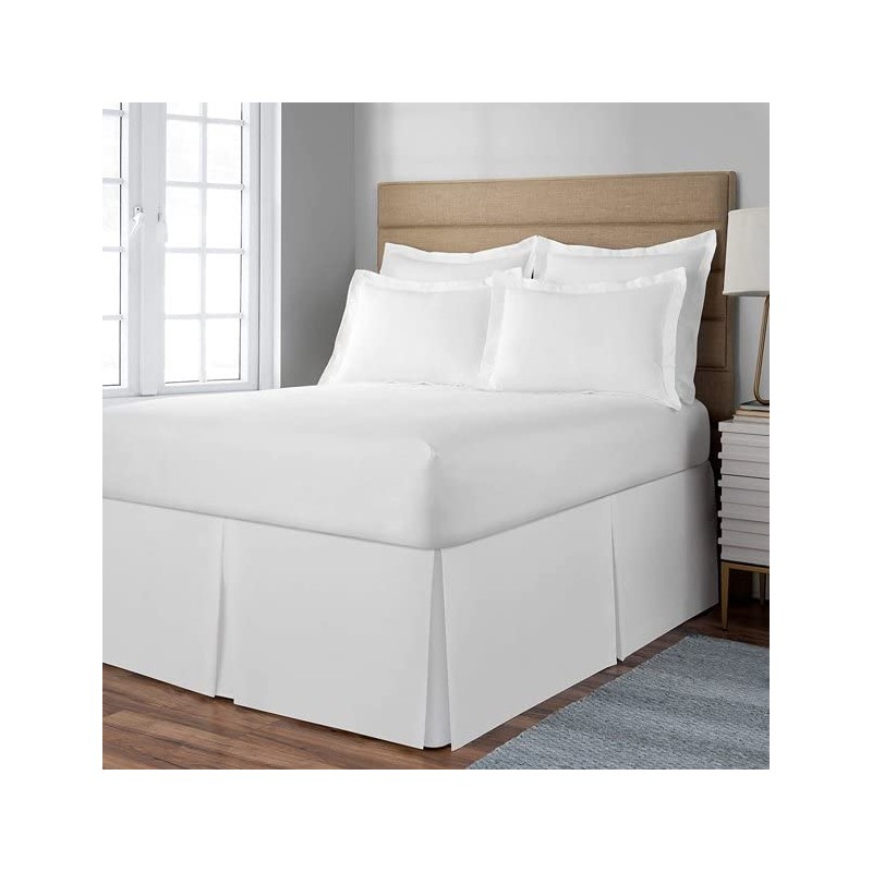 Omnegon Pleated Bed Skirt for Queen Size Bed, 100% Cotton Blend 10” inch Tailored Drop Dust Ruffle, Covers Bed Legs and Frame - White