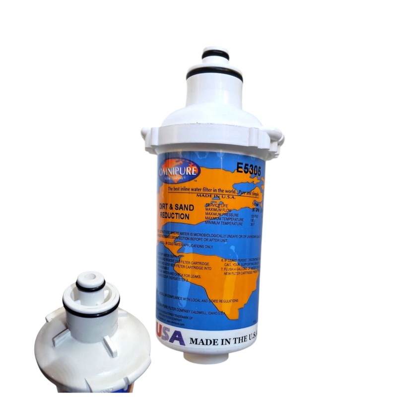 Omnipure's E-Series filters provide point-of-use filtration for applications, making them ideal for commercial use. The E5305, in particular, reduces taste, odor, and chlorine while removing sediment particles up to 5 microns. No tools are required for installation. Simply twist the used filter to remove it from the head and reverse the process to install the new filter.
