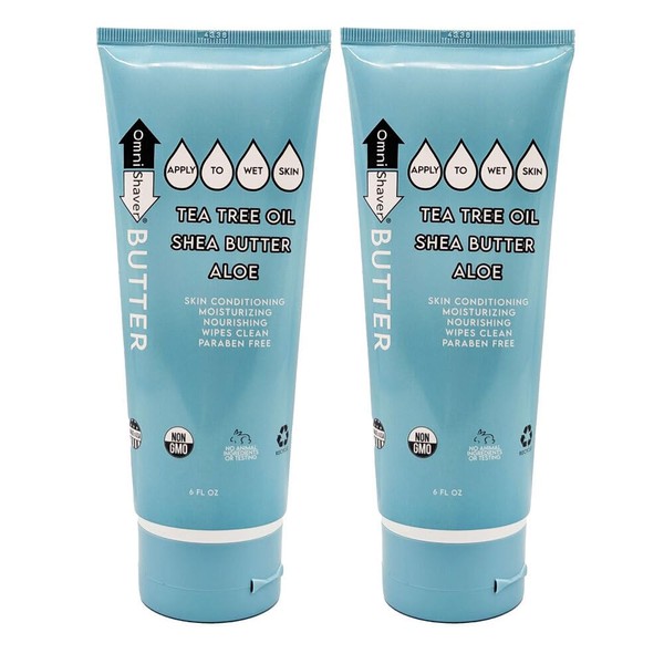 OmniShaver Shave Butter – Moisturizing Shaving Cream for Men & Women | Sensitive Skin Formula | Travel Size 6 oz | Aloe, Tea Tree & Shea Butter - Pack of 2