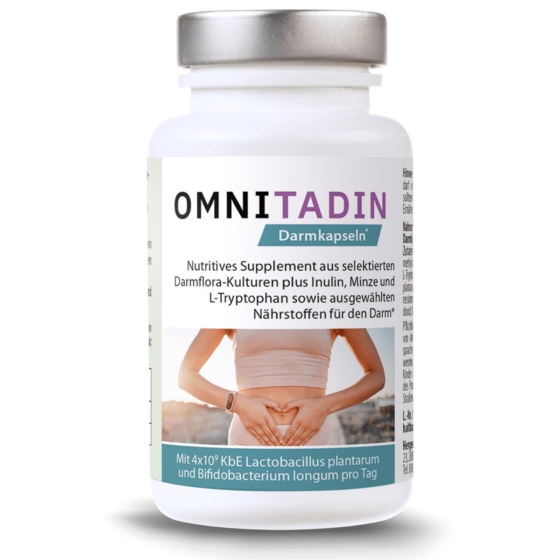 Omnitadine intestinal capsules with 4-phase formulation and selected bacterial cultures.
