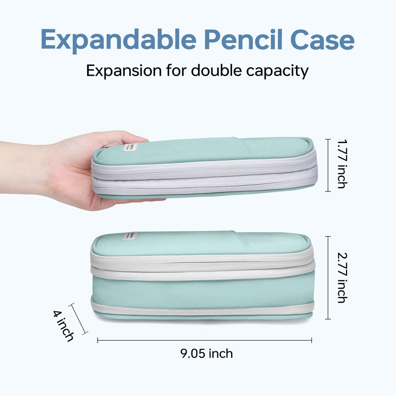 Omnpak Pencil Case Expandable Large Capacity School Student Office Teenager Girls Boys Spill Proof Scratch Resistant Pencil Eraser, Green, pencil case