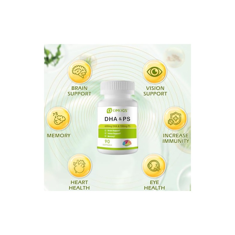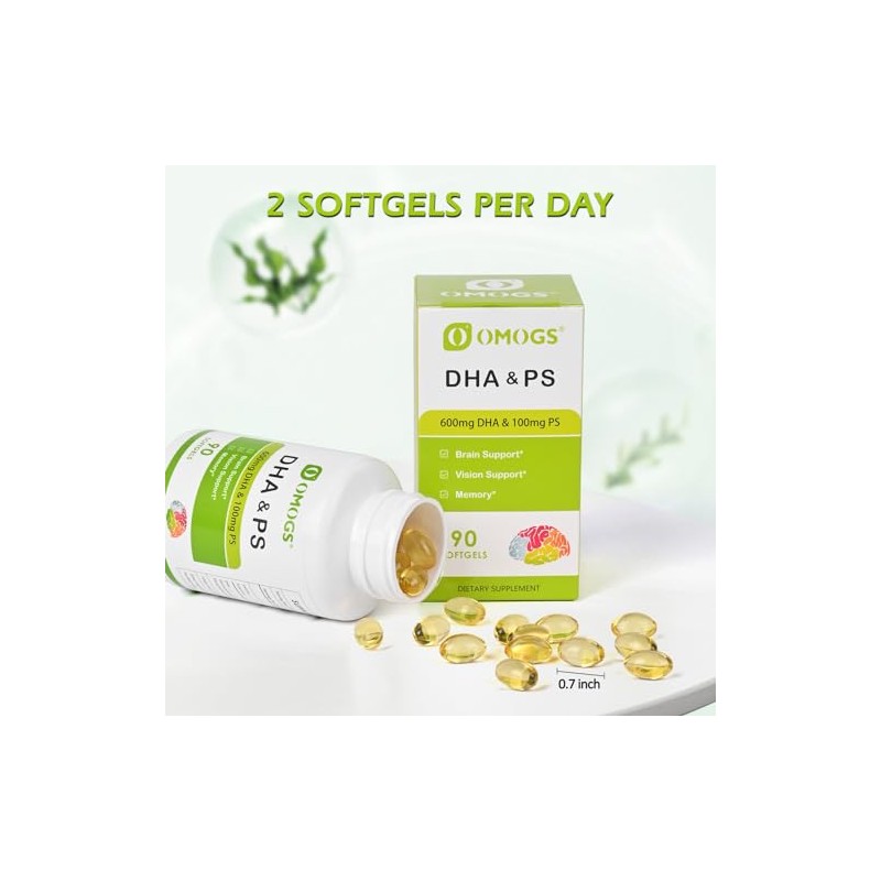 🌟 ⭐ OMOGS Algae Dha - Cápsulas Blandas De Omega-3 Dha De 600 Mg, Con Fosfatidilserina Y Aceite De Nuez, Favorece El Funcionamiento Saludable Del Cerebro, La Visión, Los Ojos Y La Memoria, Sin Gluten, Acei ⭐ 🌟