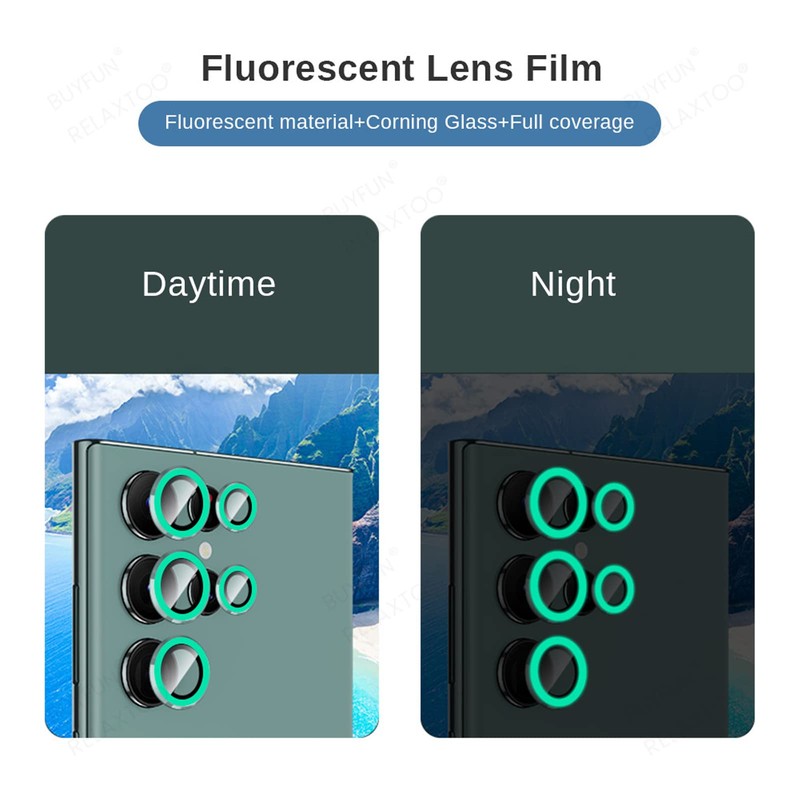 Omorro Compatible for Galaxy S24 Ultra Luminous Camera Lens Protector Ultra Thin Film Tempered Glass Camera Screen Protector Shockproof Cover Green
