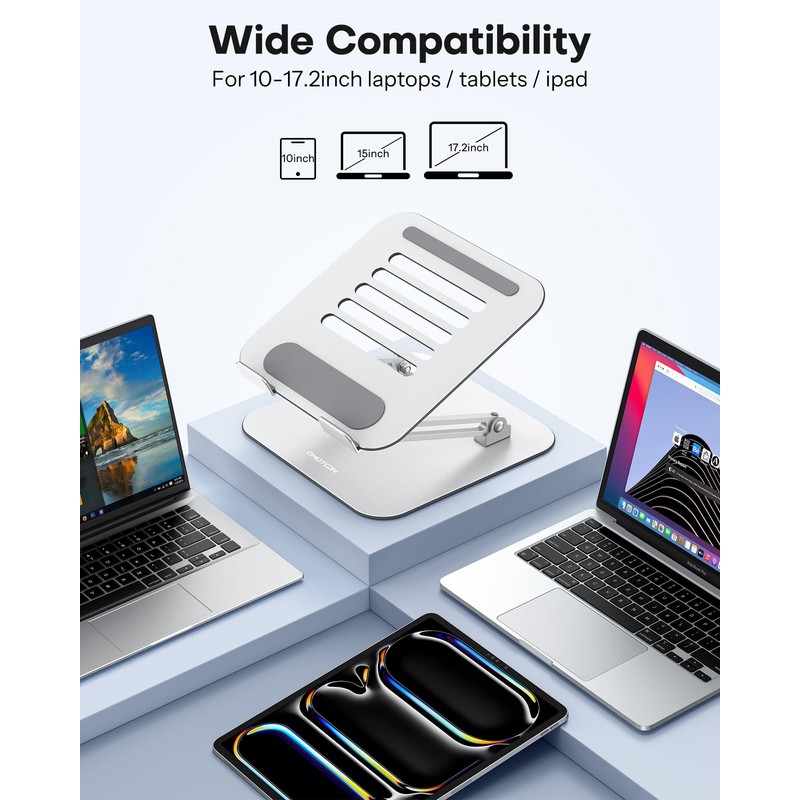 - Stable & Durable: The laptop holder is made of solid metal, providing excellent stability for your laptop or tablet while using. Equipped with a silicone pad to protect your device from scratches