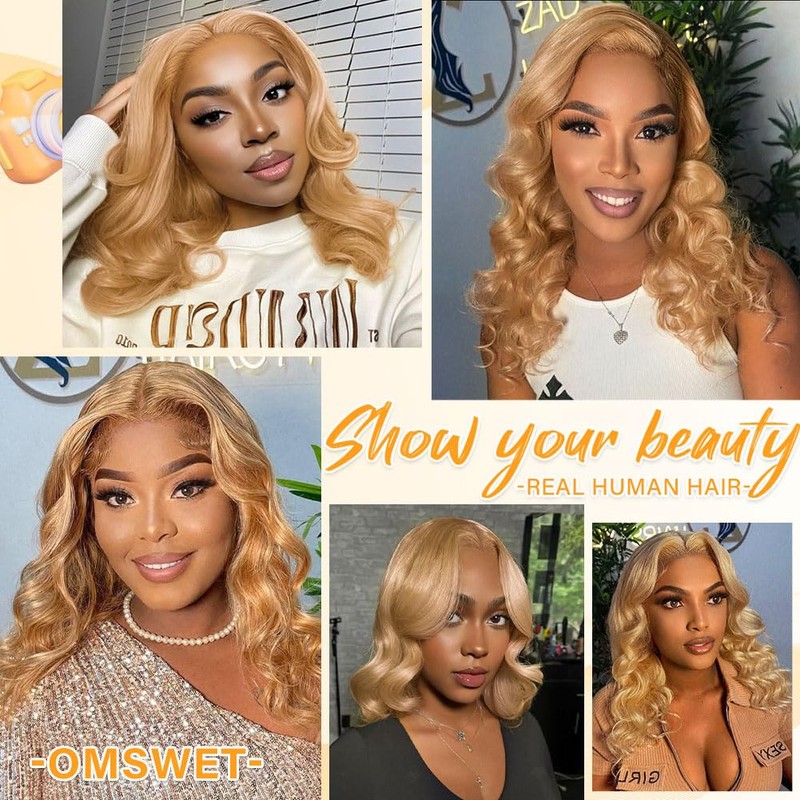- #27 Honey Blonde Virgin Hair Wigs:Blonde Wigs For Black Women Glueless HD Lace Wigs Human Hair Pre Plucked Natural Hairline Pre Bleach Knots Loose Wave Wig.Omswet Body Wave Wig Suitable for Party,Birthday,Travel,Wedding,Graduation,and Daily Life