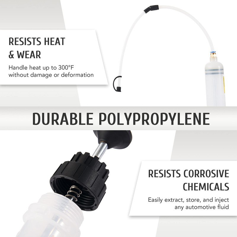 - RUGGED DURABILITY: Our fluid evacuator is manufactured from high-quality polyethylene, keeping it highly resistant to heat and chemical corrosion to easily handle any engine fluid