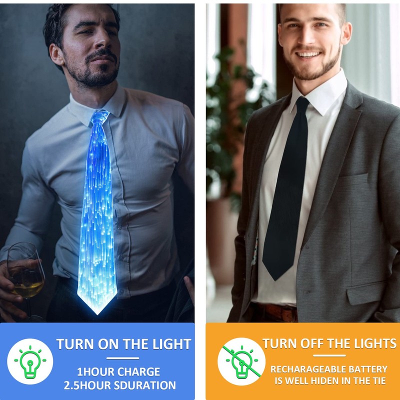 Be the star of the party, concert, wedding, or night event with the Luminous Necktie—a sleek, high-tech accessory designed to turn heads and elevate your style! Perfect for Halloween, raves, festivals, or even as a unique gift for trendsetters.
