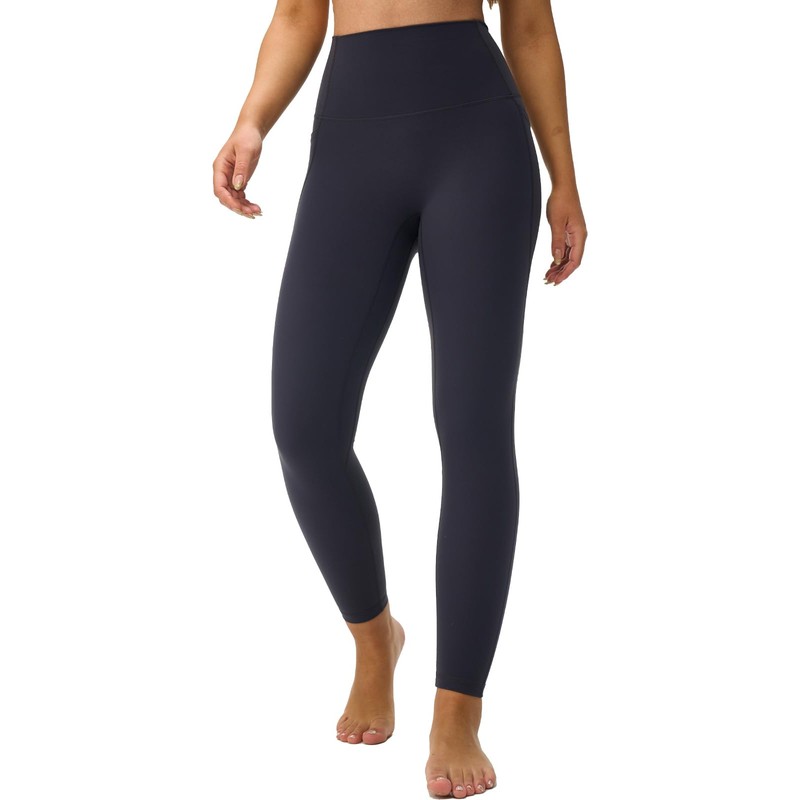 Omwilddo Women's High Waisted Yoga Leisure Leggings 25" Light Compression Butter Smooth Workout Legging Pants Side Pockets Dark Grey M