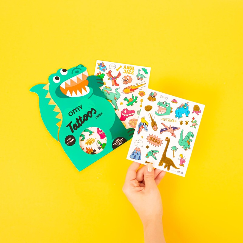 Omy Temporary Tattoos for Children, Dinos, 50 pieces, Washable Tattoos in Dinosaur Shapes