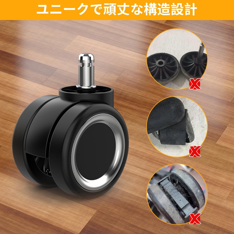 - (Ultra Durable Material) The chair casters are made of thick nylon for added durability. The two rows of casters increase the contact area of the floor, more durable, wear-resistant, and can withstand up to 300 kg
