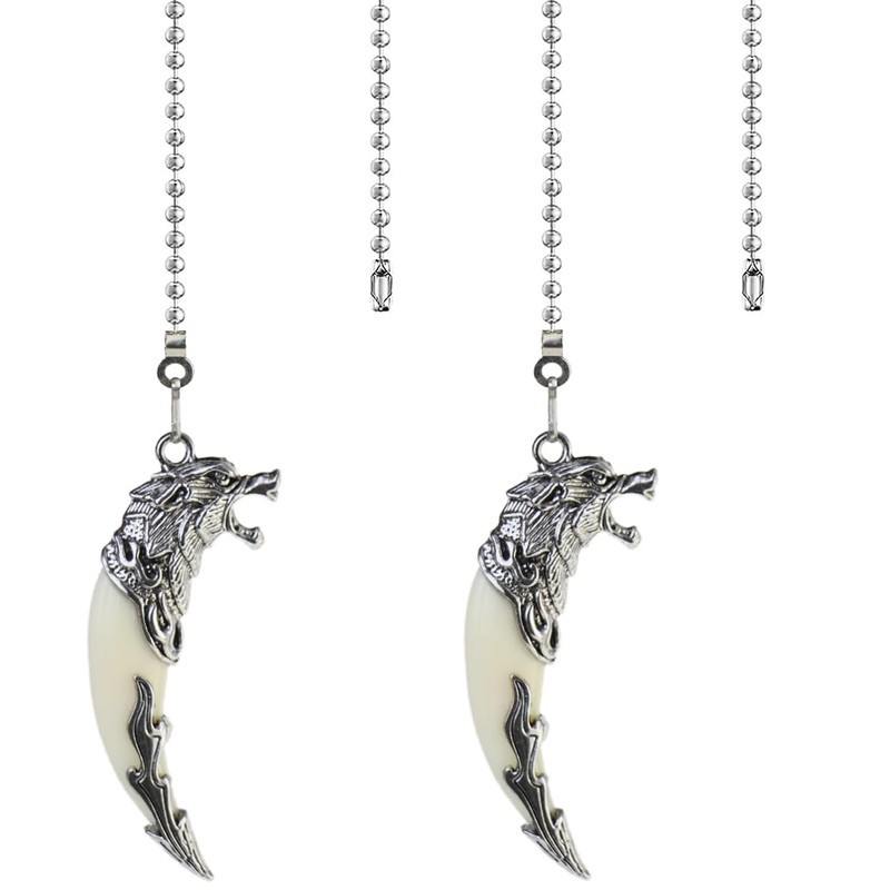 OMYZERO 12Inch Metal Wolf Ceiling Fan Pull Chain Extender with Ball Chain Connector, Pull Chains for Ceiling Fans and Lights, Decorative Fan Pull Chain Pendant Extension