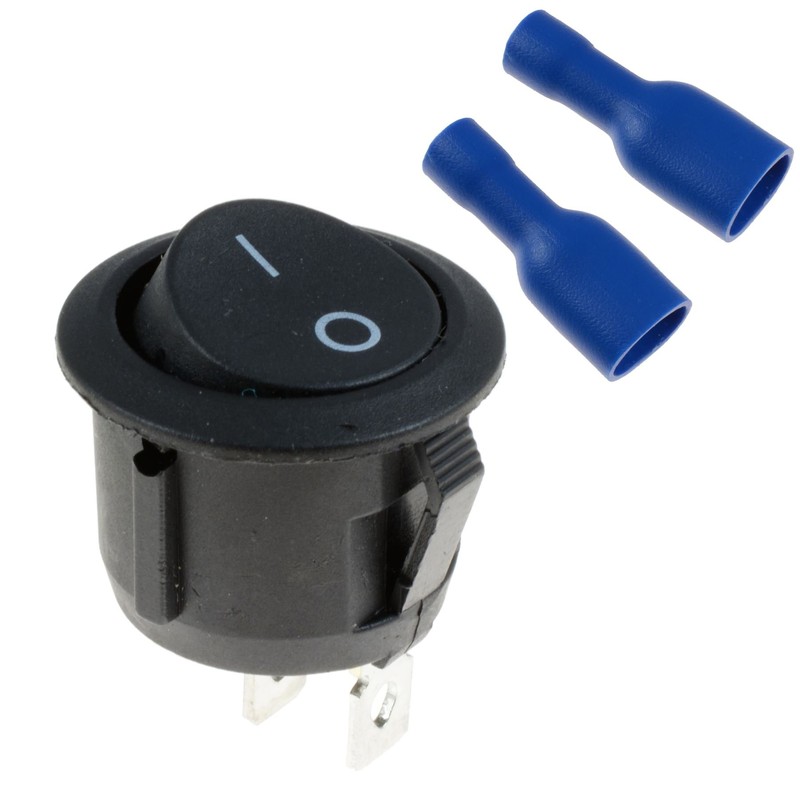 On/Off Round Rocker Switch + Female 6.3mm Spade Connectors SPST