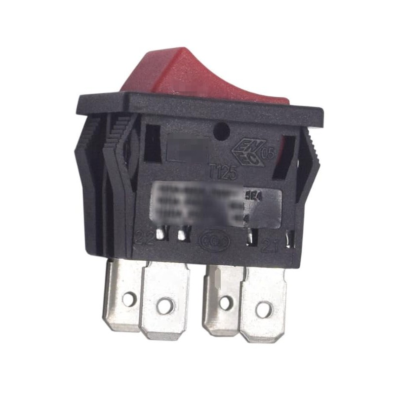 - 4 pins,red button,ON-OFF 2 positions,action is maintained.