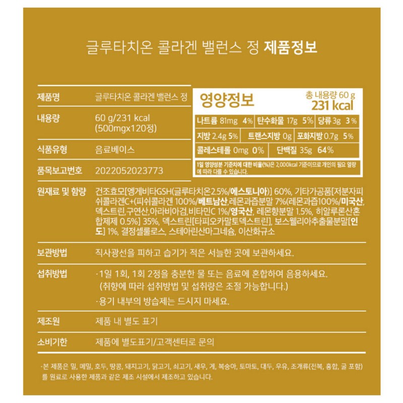 [On Sale] Glutathione low molecular weight fish collagen balance 120 tablets / [온세일]글루타치온 저분자 피쉬콜라겐 밸런스 120정x6병(12개월분) 보스웰리아 건조효모 영국산 비타민C 함유