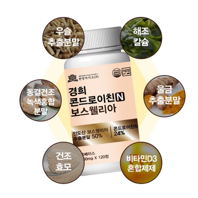 [On Sale] Kyung Hee University Oriental Medicine Bio Chondroitin Boswellia Two things at once Green mussel yeast 4 months / [온세일]경희대학교 한방바이오 콘드로이친 보스웰리아 두가지를 한번에 우슬 녹색홍합 효모 4개월