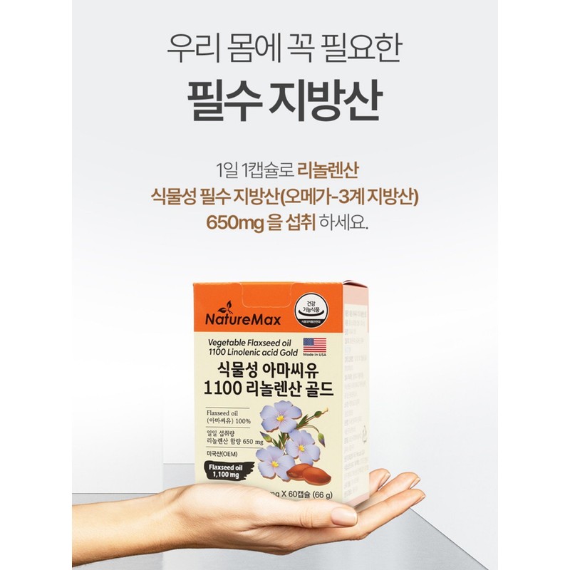 [On Sale] Nature Max Vegetable Flaxseed Oil (Flaxseed) 1100 Linolenic Acid Essential Fatty Acid Gold 60 Capsules x 3 Boxes, 1 Piece / [온세일]네이처맥스 식물성 아마씨유(플랙씨드) 1100 리놀렌산 필수지방산 골드 60캡슐x 3박스, 1개