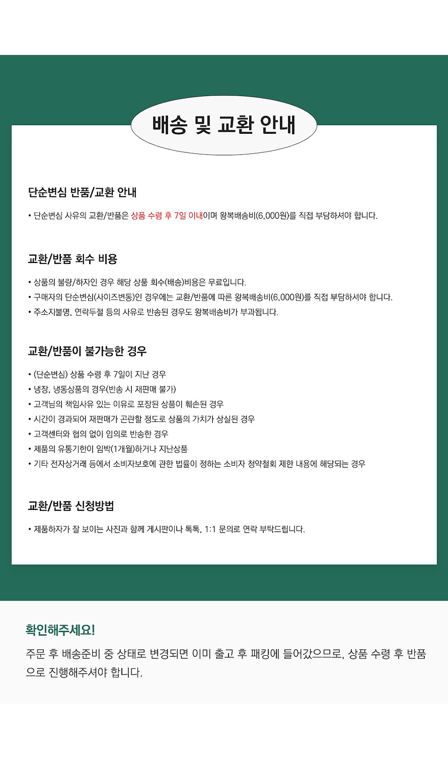 본 제품을 구매하시면 원활한 배송을 위해 꼭 필요한 고객님의 개인정보를 (성함, 주소, 전화번호 등) 택배사 및 제 3업체에서 이용하는 것에 동의하시는 것으로 간주됩니다.