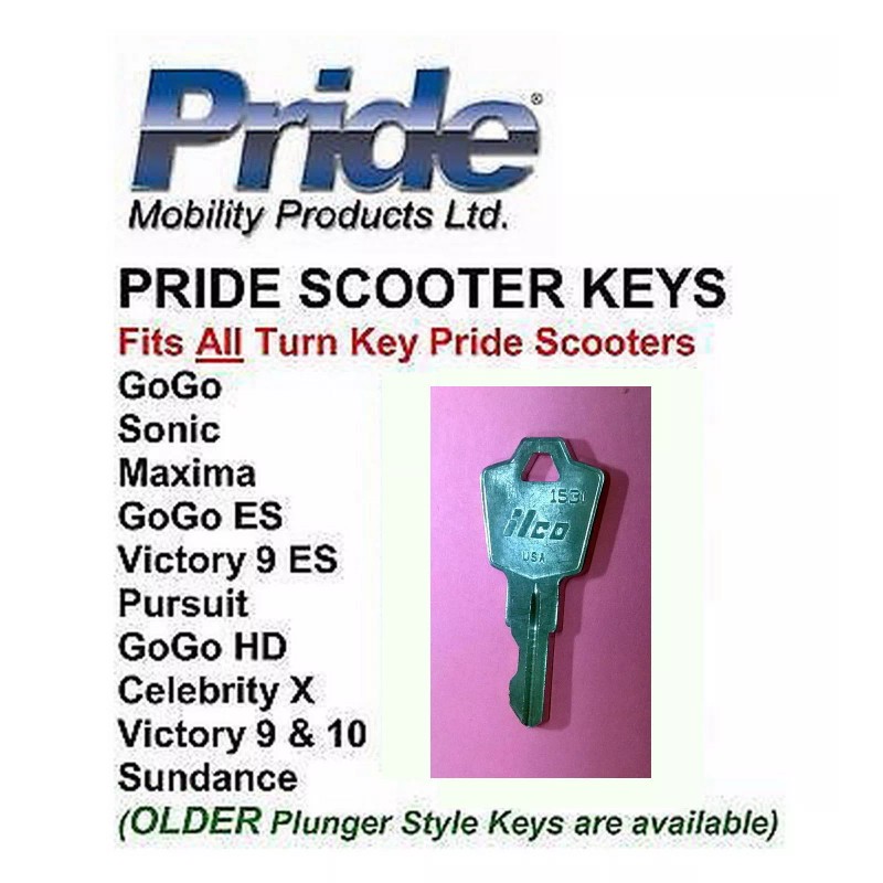 On The Go Mobility TWO (2) KEY - Pride Scooter Fits All GoGo, Pursuit, Celebrity, Victory, Maxima