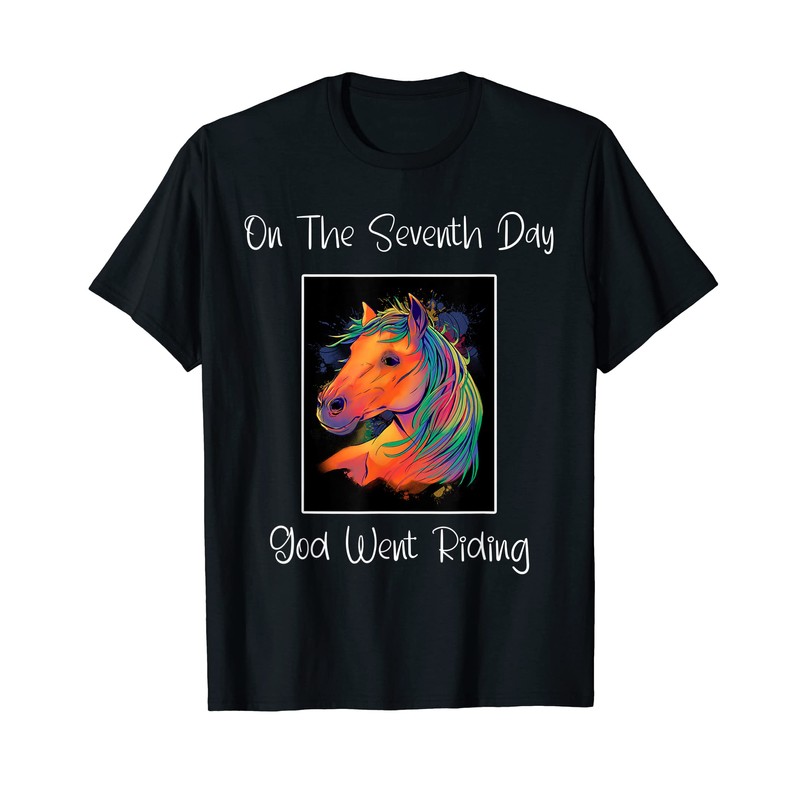 - This Funny horse riding design is for men, women and kids who enjoy horse riding and have a sense of humor. It Features a colorful graphic of a horse with flowing hair and the funny horse phrase saying On The Seventh Day God Went Riding