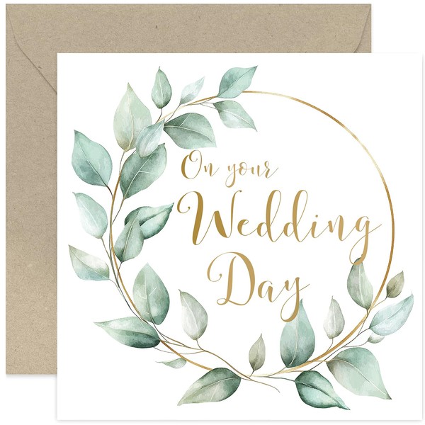 On Your Wedding Day Card for Bride & Groom - Eucalyptus Foliage Wreath Congratulations to the New Mr and Mrs - Heartfelt Bride and Groom Cards | Blank Inside