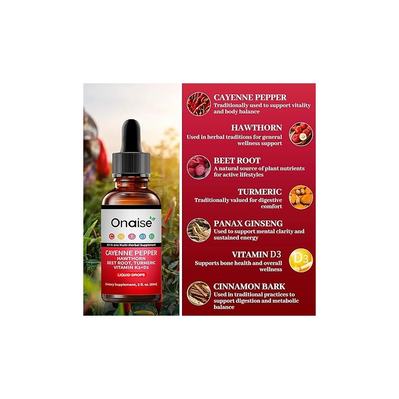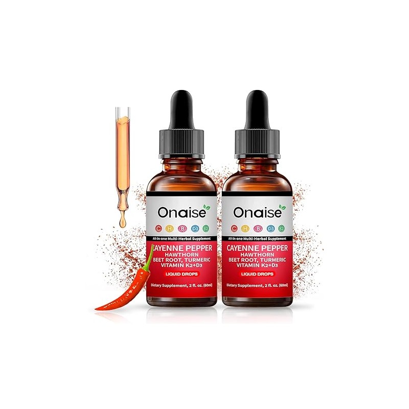 ONAISE Cayenne Drops - Cayenne Pepper Drops Liquid Supplement with Organic Hawthorn, Beet Root, Turmeric, Vitamin K2 D3-2FL.OZ
