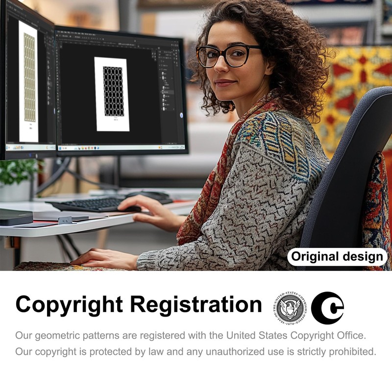 - [ Upgraded Machine Washable ]: For daily cleaning, please try to clean the rug with a vacuum or shake cleaning, dust and debris on the surface can be removed easily. For deeper cleaning, machine wash separately on cold with mild detergent then line dry. You can effortlessly keep your rug looking fresh and pristine, saving you time and effort on maintenance. We own the copyright to this geometric pattern.