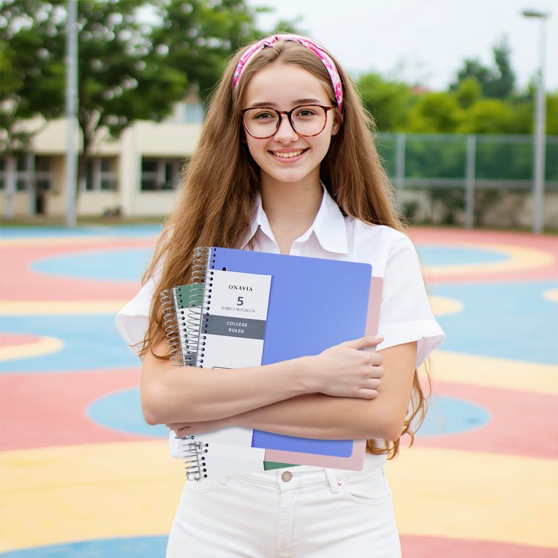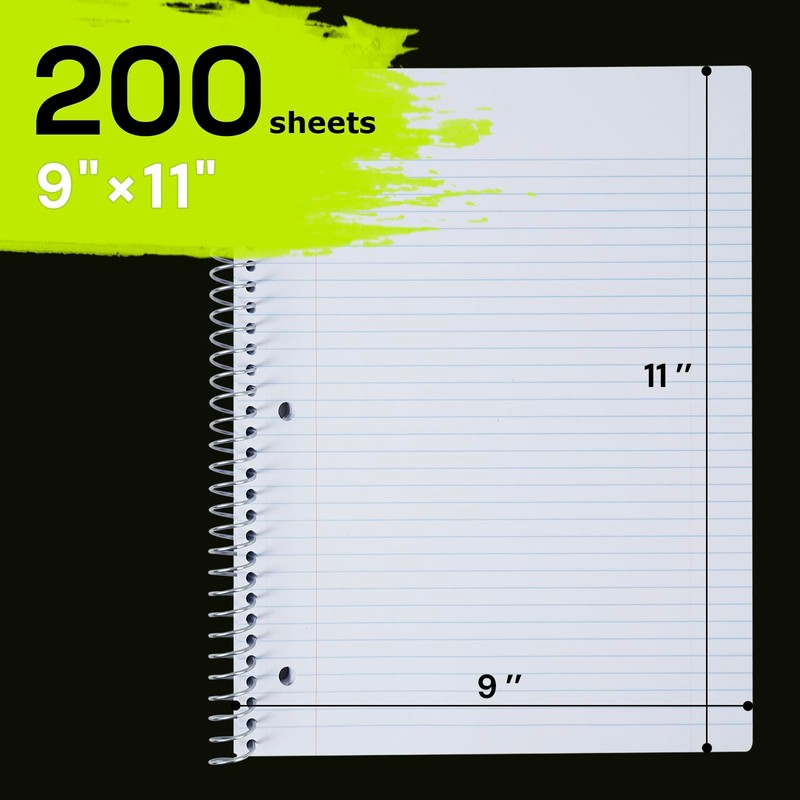 - COLLEGE RULED NOTEBOOK: ONAVIA 9" x 11" college ruled spiral note book features 200 sheets(400 pages) premium sturdy and ink-bleed resistant paper with red margin lines and is 3-hole punched. Write with confidence using gel pens, markers, or highlighters – minimal ink bleed-through ensures crisp, clean notes, which makes them the perfect for school students, office professionals, or busy parents juggling schedules, perfect choice for School, Home or Office needs