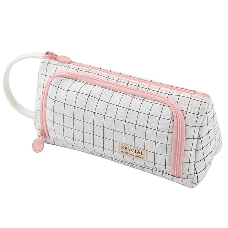 ONCCI Pencil Case - Large Capacity Teenager Case - Pens & Pencil Case for School & Office (White Plaid)