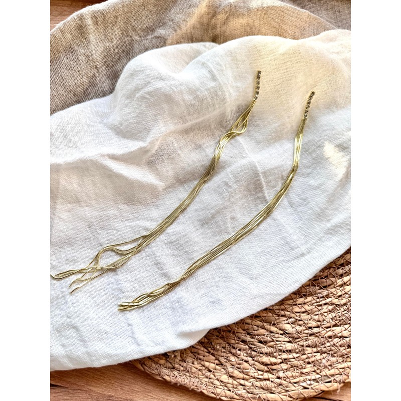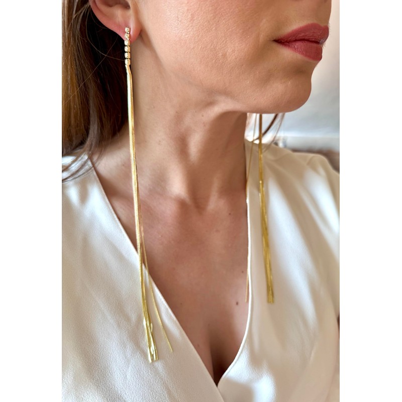 Mit einer beeindruckenden Länge von 24 cm fallen die Ohrringe elegant herab und schaffen eine schlanke, elongierte Silhouette.