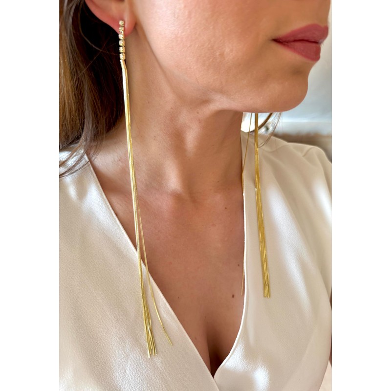 ONDEGO® Lange Quasten-Ohrringe, Silber oder Gold, mit Strasssteinen, Eleganter Schmuck, Extra Lang (Gold)