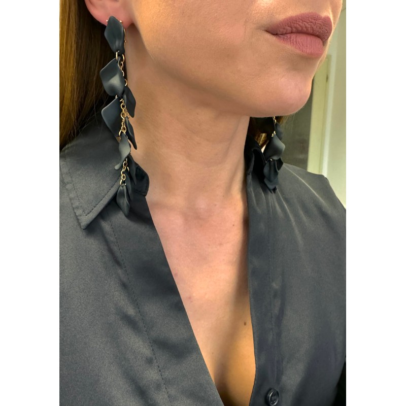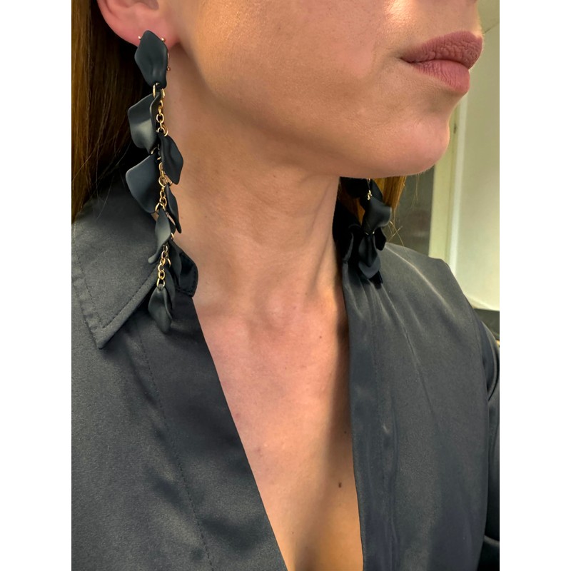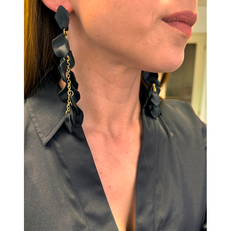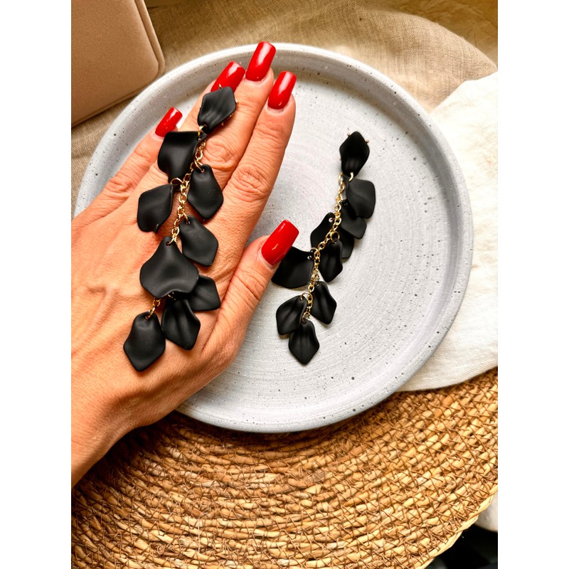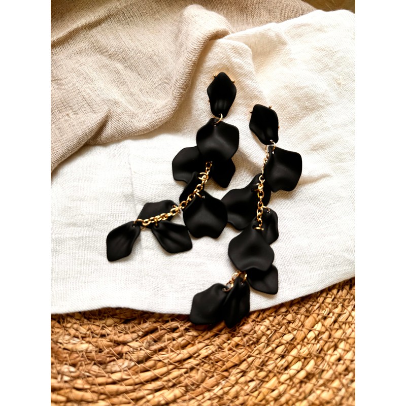 ❧ sehr extravagante Ohrringe mit Arcyl schwarzen Blütenblättern verziert