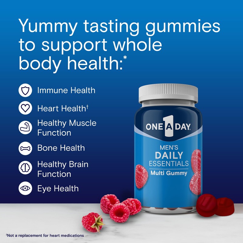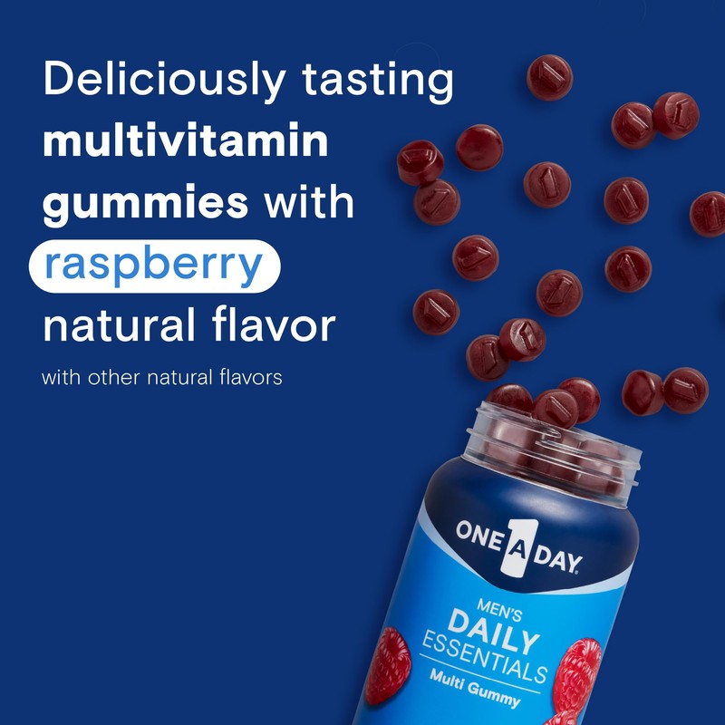 - Great tasting gummy vitamins for men: One A Day Men's Daily Essentials Multivitamin Gummies' scientifically designed formula provides nutritional support in a delicious natural raspberry flavored multivitamin gummy