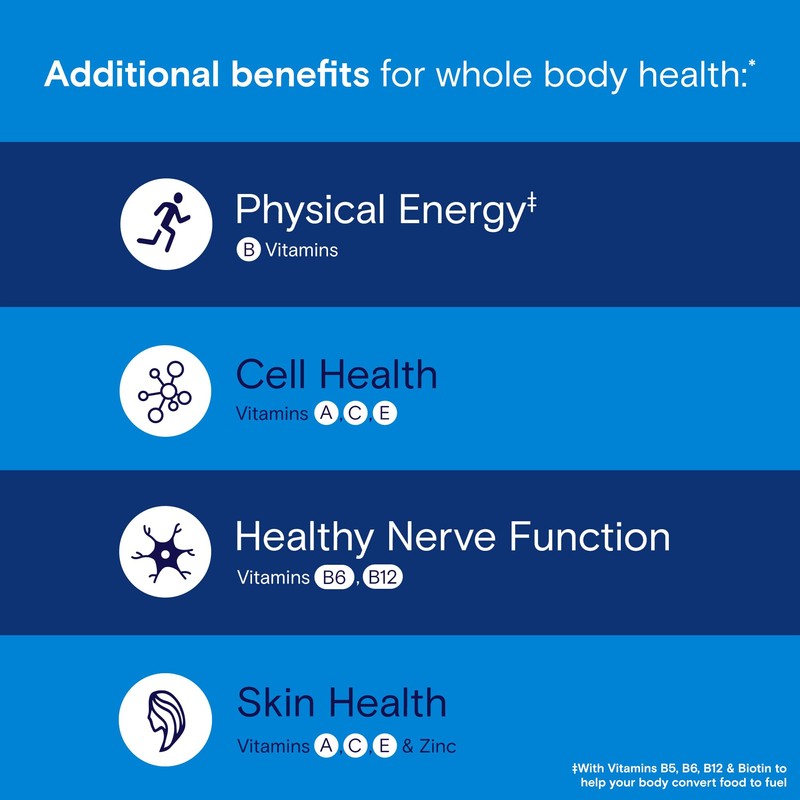 - Daily serving: One A Day men's multivitamin supports immune health, bone health, eye health, healthy brain and muscle function, physical energy(1), cell health, healthy nerve function and skin health.* Adults, fully chew two gummies daily