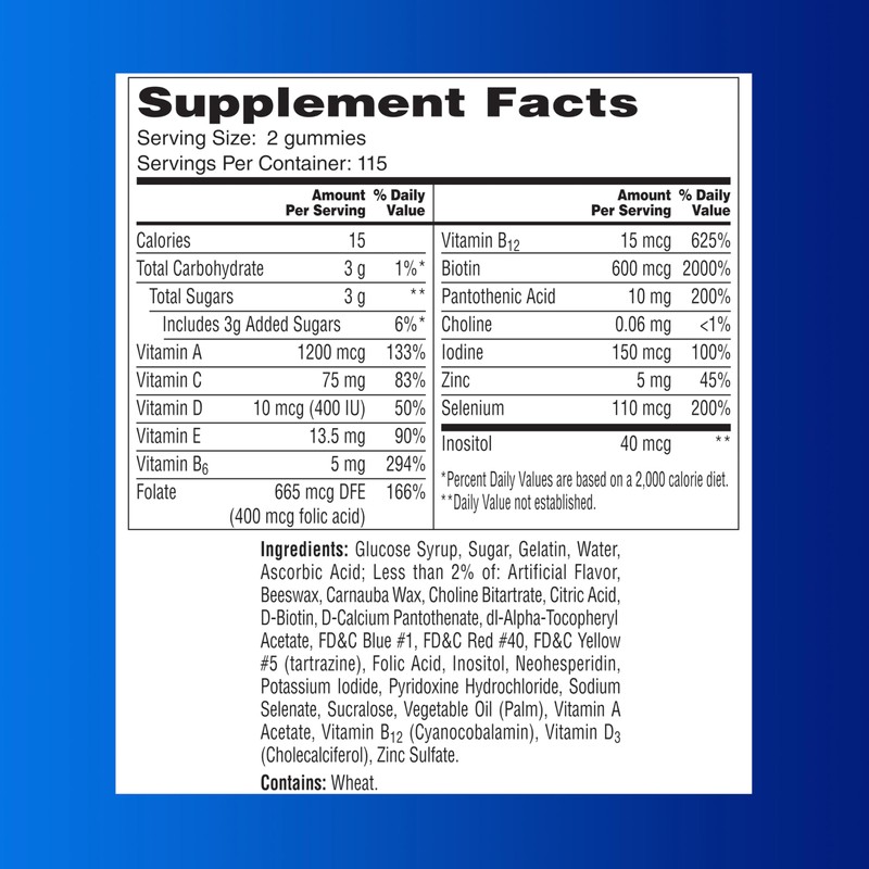 - Contains key nutrients like Vitamins A, B12, B6, C, D, E, Folic Acid, Biotin, Pantothenic Acid, Iodine, Zinc, and Selenium